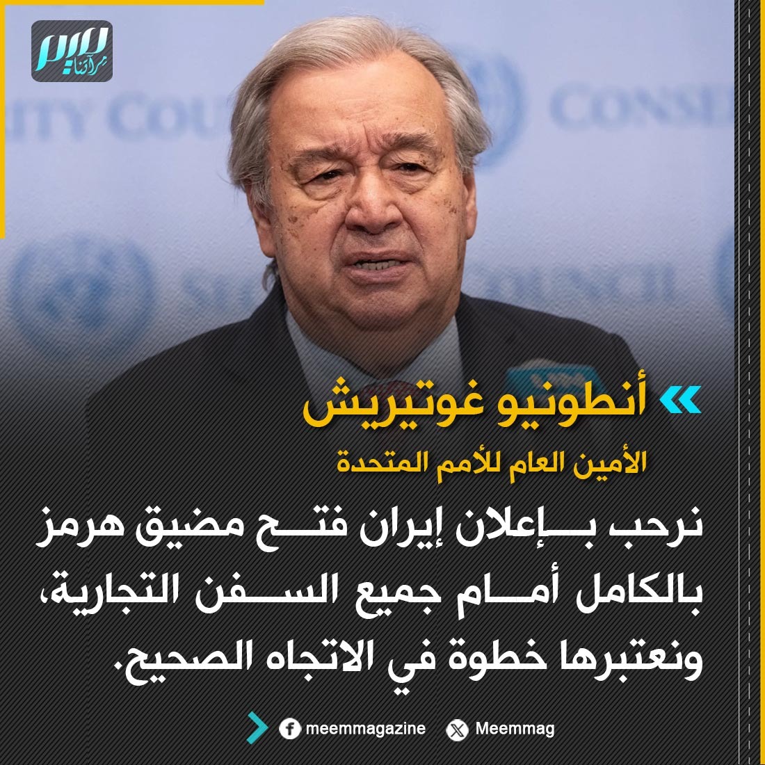 غوتيريش: نرحب بإعلان إيران فتح مضيق هرمز بالكامل