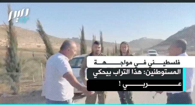 "هذه أرضنا، وهذا التراب بيحكي عربي"... فلسطيني يواجه مستوطنين إسرائيليين وعددا من جنود الاحتلال المدججين بالسلاح، أثناء محاولتهم الاستيلاء على أراضي بلدة إذنا غرب الخليل.