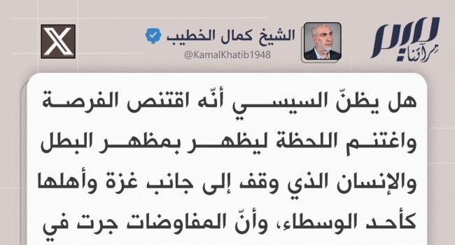 كمال الخطيب: والله يا سيسي، لو غسلوك بكل مياه بحر غزة وماء نيل مصر، فلن تتطهّر من رجس خيانتك ولا من دنس تآمرك على أهل القطاع.