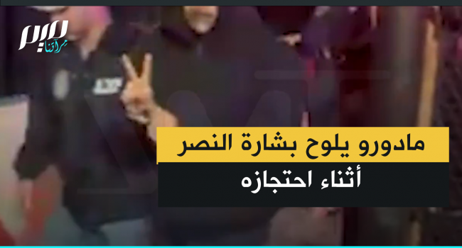 الرئيس الفنزويلي نيكولاس مادورو يلوح بشارة النصر أثناء احتجازه لدى السلطات الأمريكية.