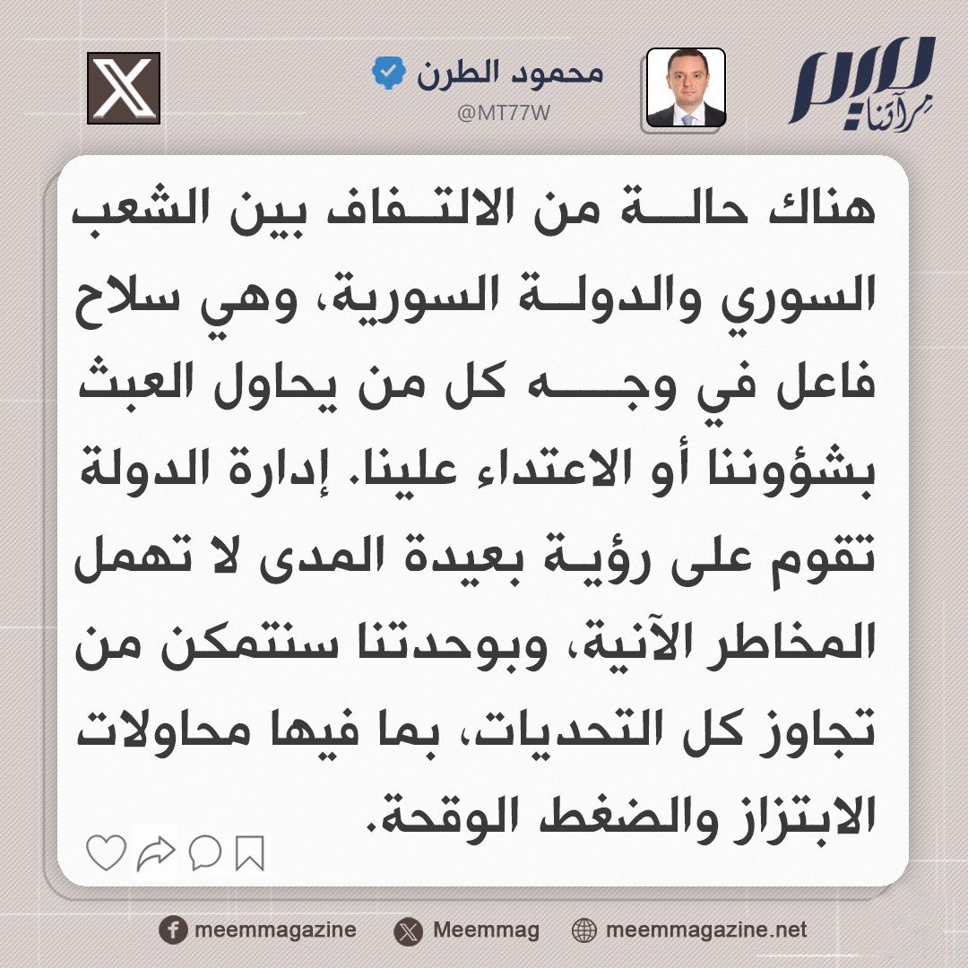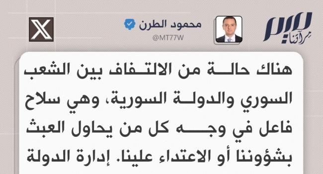 محمود الطرن: هناك حالة من الالتفاف بين الشعب السوري والدولة السورية