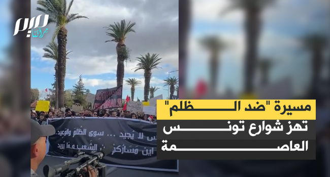 "يا مواطن يا مقموع زاد الفقر زاد الجوع".. تونسيون في العاصمة يهتفون بصوت واحد خلال مسيرة "ضد الظلم" دفاعا عن حرية التعبير ورفضا لمحاكمات الرأي.