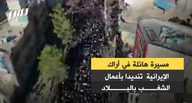 لقطات جوية تظهر حشوداً ضخمة تتدفق على شوارع "أراك" لحضور مسيرات احتجاجية ضد أعمال الشغب المدعومة من الخارج في البلاد، كما يصفها الناطقون الرسميون.
