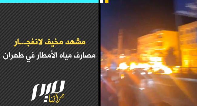 مشهد مخيف.. شاهد لحظة انفجار مصارف مياه الأمطار في طهران واشتعال النيران فيها، بعد تدفق الوقود من مستودعات النفط التي استهدفتها غارات إسرائيلية.