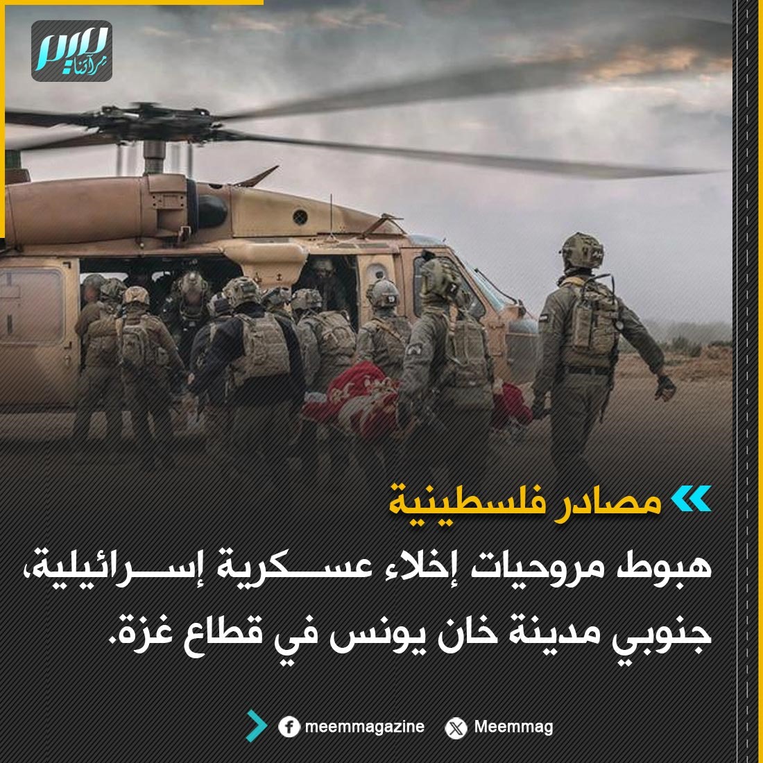 مصادر فلسطينية: هبوط مروحيات إخلاء عسكرية إسرائيلية، جنوبي مدينة خان يونس في قطاع غزة.