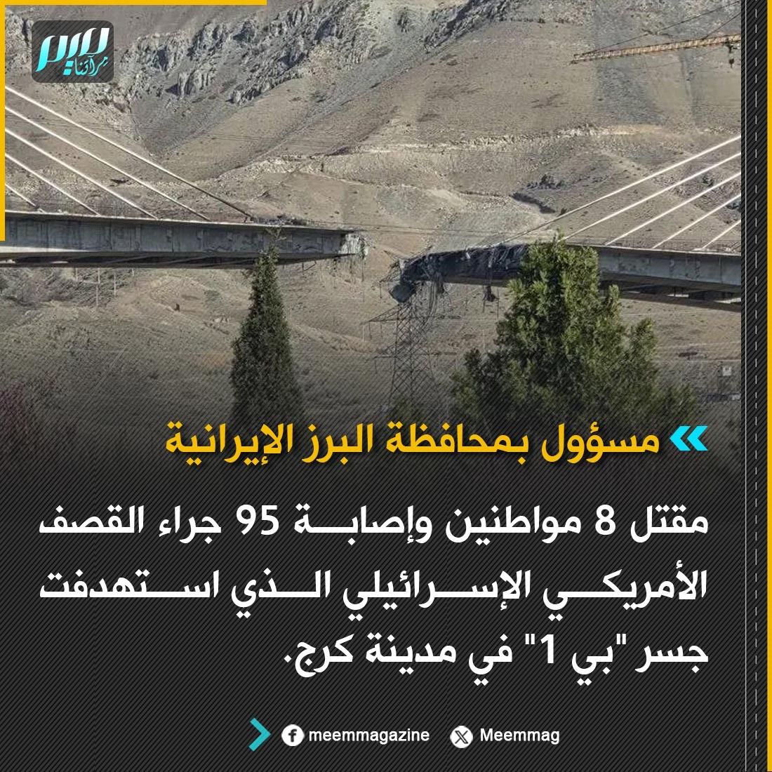 قصف أمريكي-إسرائيلي يستهدف جسر مدينة كرج الرابط با…