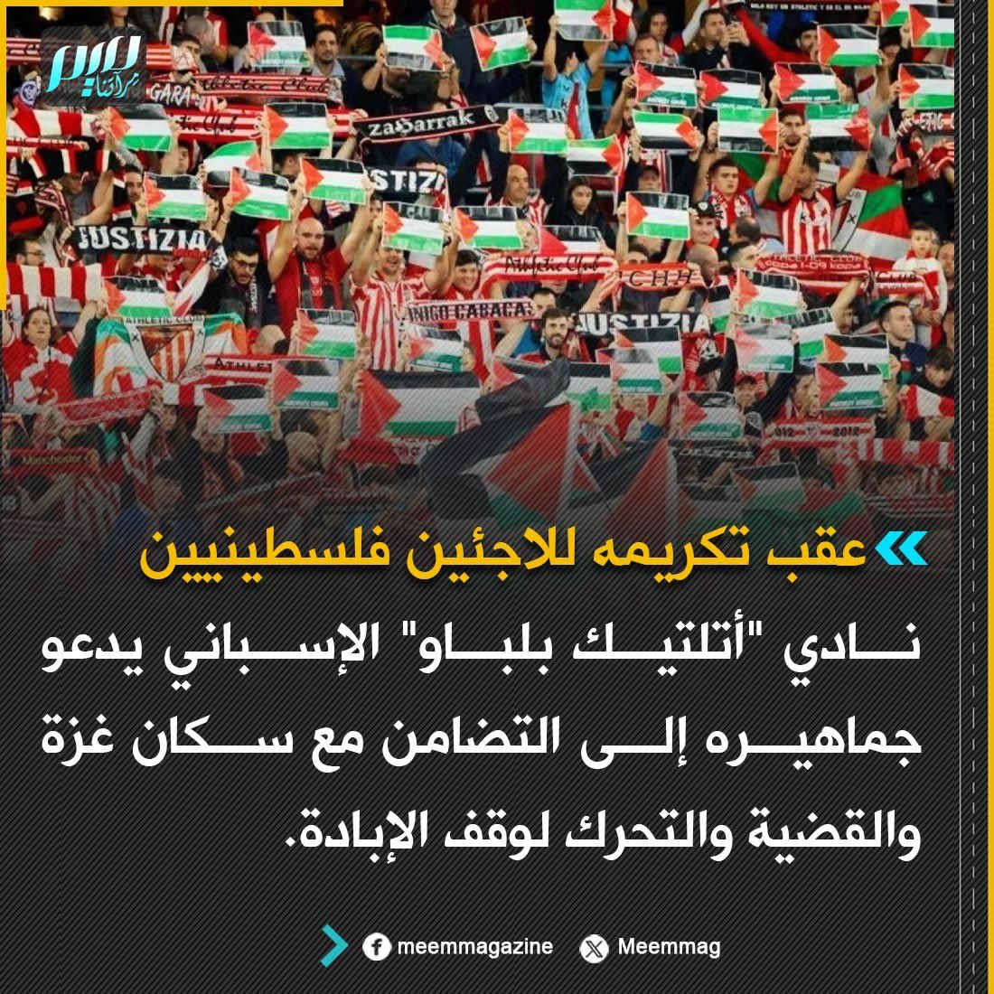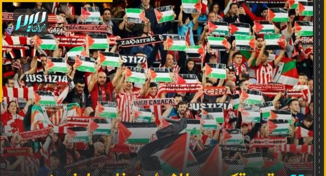 نادي "أتلتيك بلباو" الإسباني يدعو جماهيره إلى التضامن مع سكان غزة والقضية والتحرك لوقف الإبادة، عقب تكريمه للاجئين فلسطينيين في إقليم الباسك.
