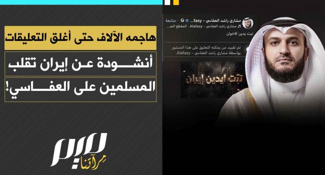 هاجمه الآلاف حتى اضطر إلى إغلاق التعليقات… أنشودة “تبت يدين إيران” تقلب المسلمين على مشاري العفاسي الذي تحول من صوت يهدي الناس بالقرآن إلى بوق دعاية للطغاة!