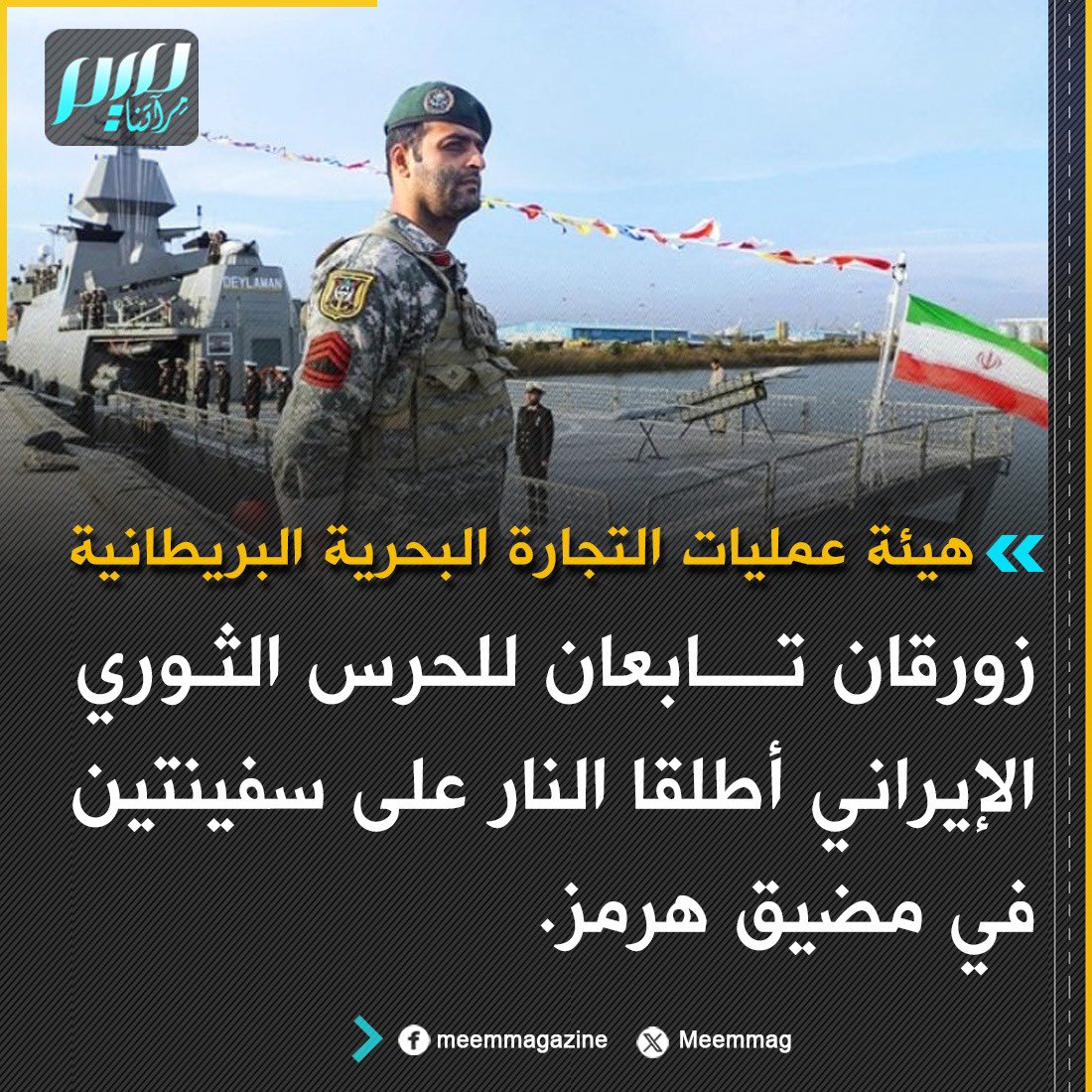 هيئة عمليات التجارة البحرية البريطانية: زورقان تابعان للحرس الثوري الإيراني أطلقا النار على سفينتين في مضيق هرمز.