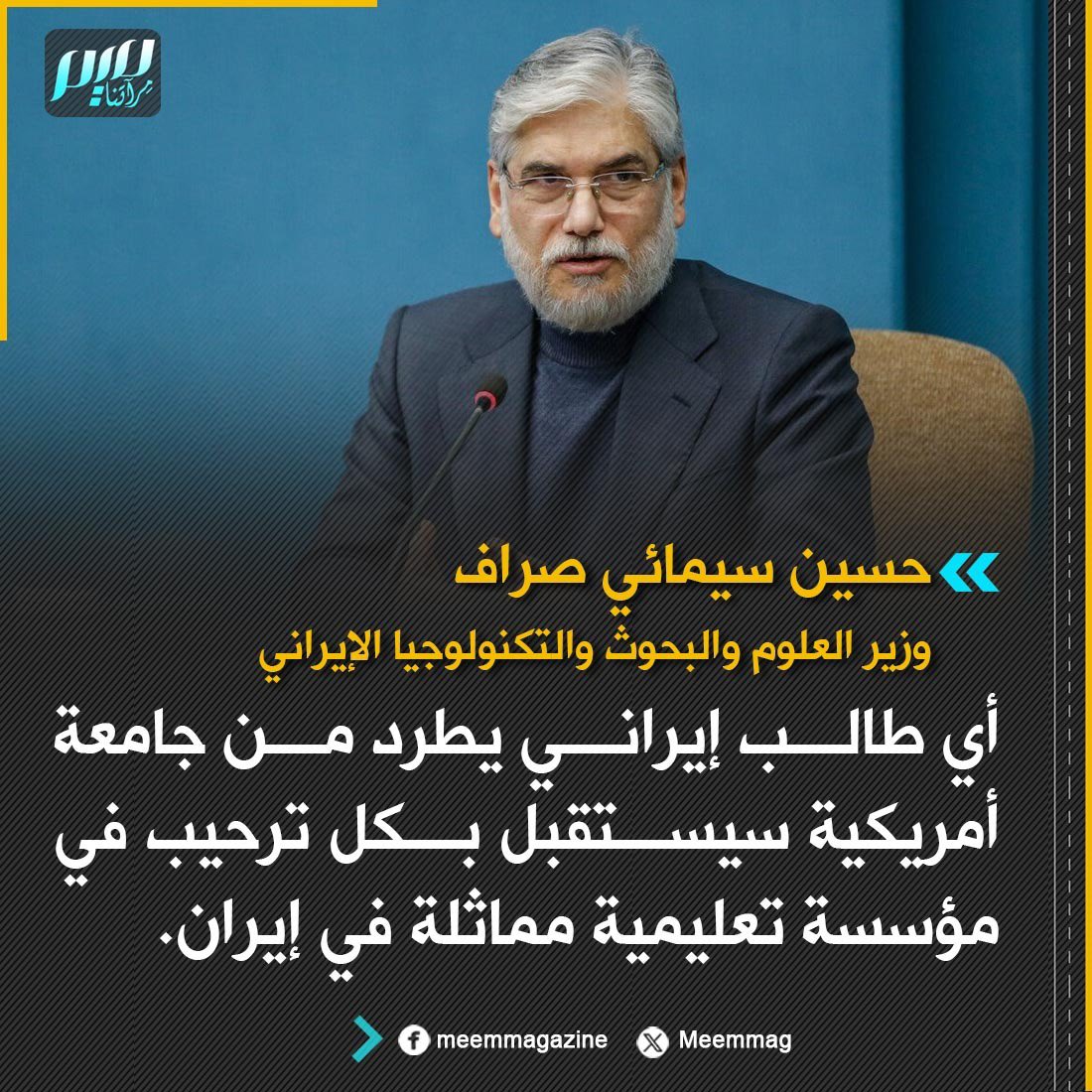وزير العلوم والبحوث والتكنولوجيا: أي طالب إيراني يُطرد من جامعة أمريكية سيُقبل بكل ترحيب في مؤسسة تعليمية مماثلة في إيران.