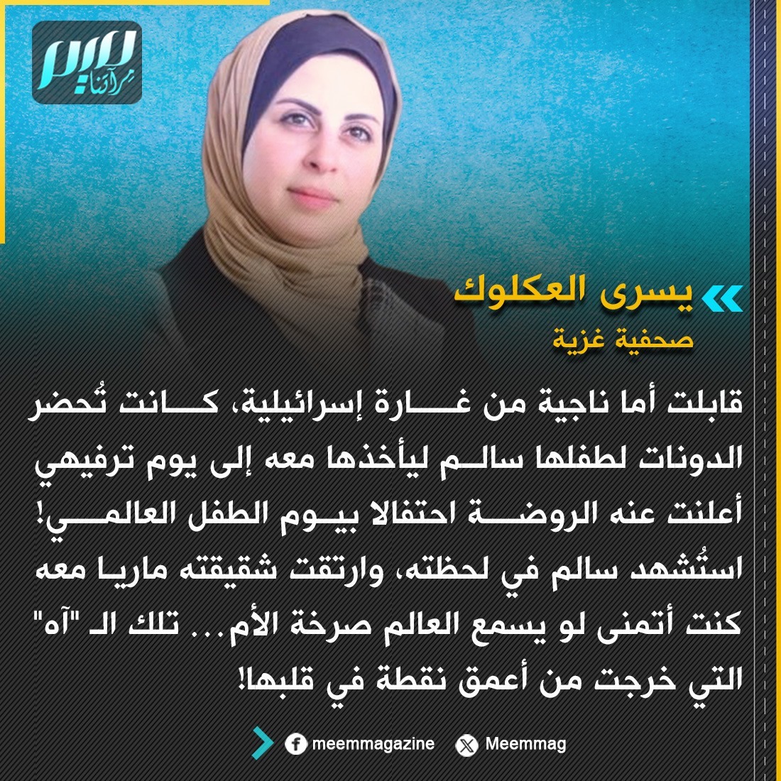 يسرى العكلوك: كنت أتمنى لو يسمع العالم صرخة الأم… تلك الـ "آه" التي خرجت من أعمق نقطة في قلبها!