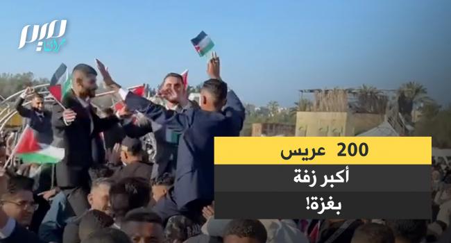 بأهازيج ولدت في ليالي غزة الحالكة.. منشد غزة مهند أبو قمر يُحيي فرح 200 عريس وعروسة، في أكبر زفة جماعية تشهدها غزة!