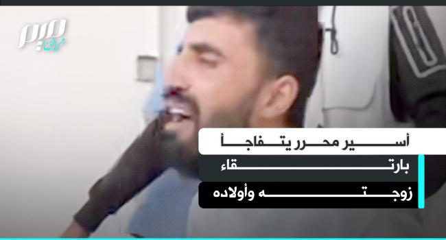 أسير فلسطيني محرر من قطاع غزة يتفاجأ بارتقاء زوجته وأولاده بعد خروجه من سجون الاحتلال اليوم.