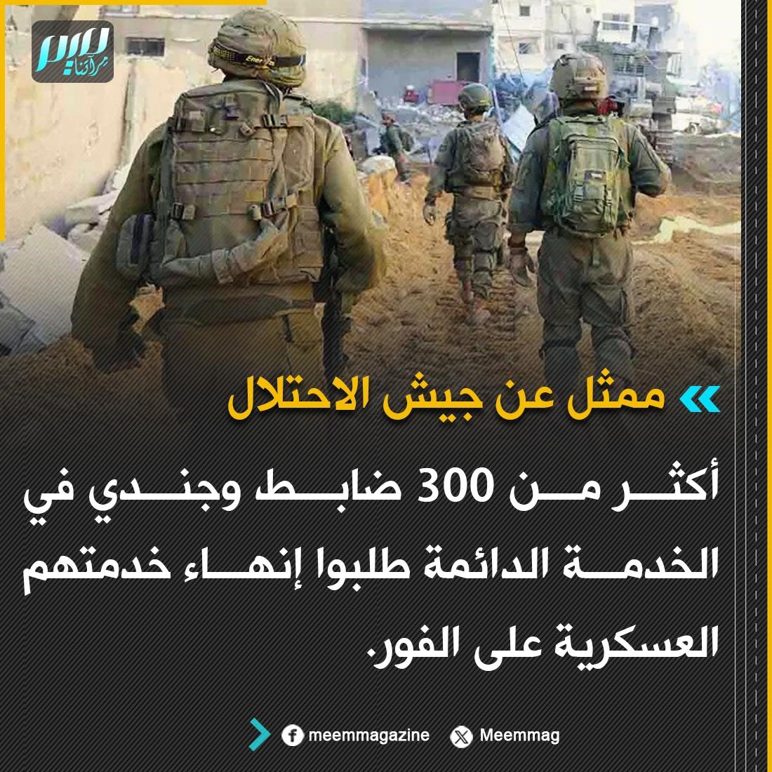 ممثل عن جيش الاحتلال: أكثر من 300 ضابط وجندي في الخدمة الدائمة طلبوا إنهاء خدمتهم العسكرية على الفور.