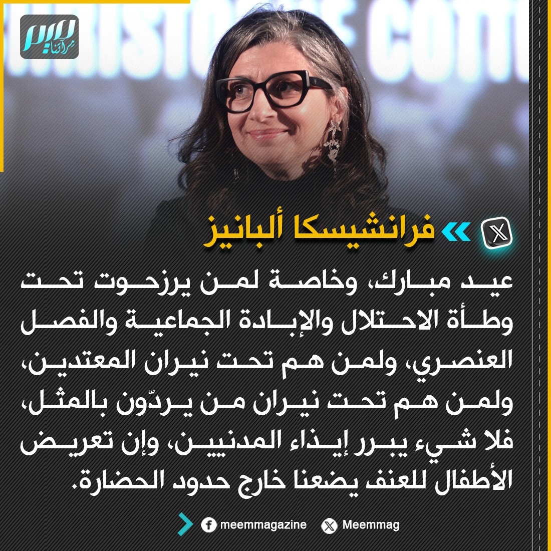 ألبانيز: عيد مبارك، وخاصة لمن يرزحون تحت وطأة الاحتلال والإبادة