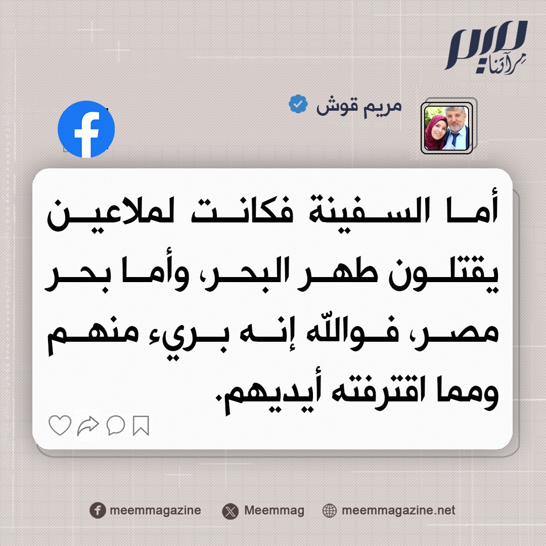 قوش: أما السفينة فكانت لملاعين يقتلون طهر البحر، وأما بحر مصر، فوالله إنه بريء منهم ومما اقترفته أيديهم.