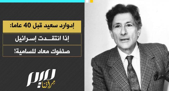 المفكر الفلسطيني- الأمريكي إدوارد سعيد: "هناك مجموعة كاملة من الكتب والمقالات الصادرة الآن التي تستخدم فيها معاداة السامية مظلة شاملة لأي شكل من أشكال النقد لإسرائيل، ونتيجة لذلك إذا قلت أي شيء تقريبا فسيتم تصنيفك معاديا للسامية."