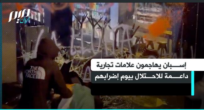 إسبان غاضبون في برشلونة يهاجمون علامات تجارية داعمة للاحتلال في يوم إضرابهم العام، إسنادا لغزة وفلسطين.