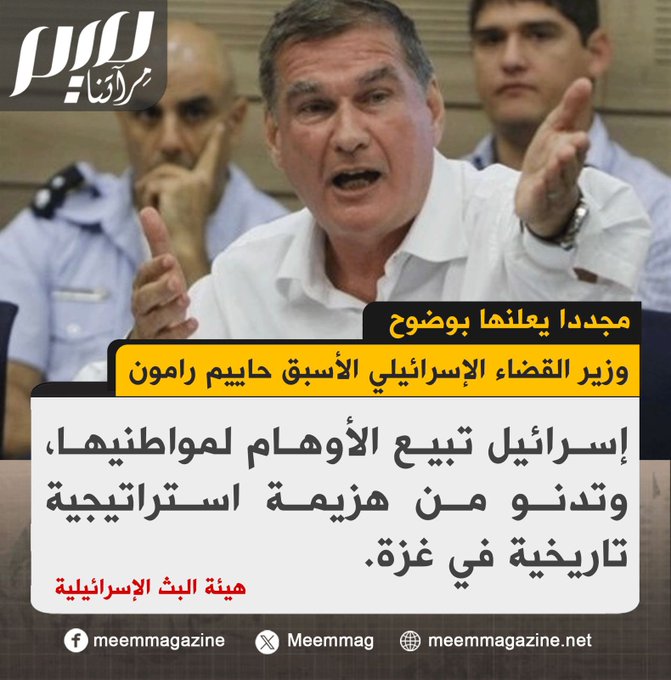 مجددا يعلنها بوضوح.. حاييم رامون: إسرائيل تبيع الأوهام لمواطنيها، وتدنو من هزيمة استراتيجية تاريخية في غزة.