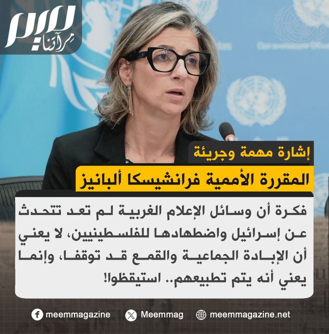 هل تتفق مع المقررة الأممية بدعوتها لليقظة والانتباه إلى أنه يتم تطبيع وسائل الإعلام مع جرائـ ـم الاحتـ ـلال؟