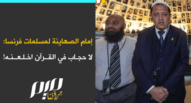 حسن الشلغومي، الذي ظهر منذ أسابيع يقبل يد وزير إسرائيلي، يهب لتأييد مشروع قانون فرنسي لحظر الحجاب على المسلمات دون ال16، معلنا: "لا حجاب في القرآن!"