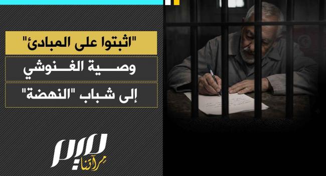 ملخص: "علّمنا القرآن أن الحرية معنى يسكن القلب قبل أن تكون حركة في الفضاء، فمن كان قلبه حرا بالإيمان، عزيزا بالحق، ثابتا على المبدأ؛ فلن تقيده جدران ولا قيود".. الشيخ راشد الغنوشي يوجه رسالة من السجن إلى شباب حركة النهضة.