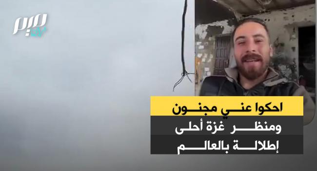 شاب فلسطيني: "احكوا عني مجنون، هذه الإطلالة لا أبدّلها بأجمل إطلالات العالم، فأنا هنا بغزة سأبقى متشبثًا ويأتي أبنائي من بعدي يكملون الطريق".