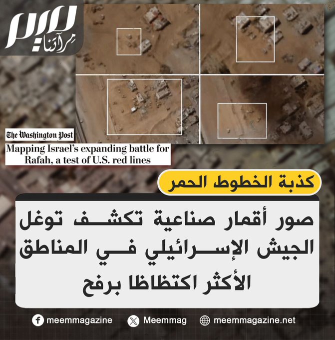 "خريطة معركة إسرائيل المتوسعة في رفح اختبار لخطوط بايدن الحمر".. واشنطن بوست تعلق على صور أقمار صناعية، تفضح كذب الإدارة الأمريكية بشأن قلقها المزعوم إزاء توغل الجيش الإسرائيلي في المناطق الأكثر اكتظاظا بـرفح.