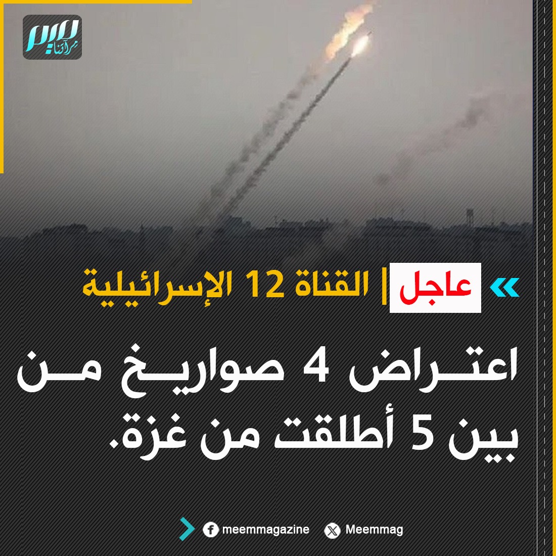 اعتراض 4 صواريخ من بين 5 أطلقت من غزة.