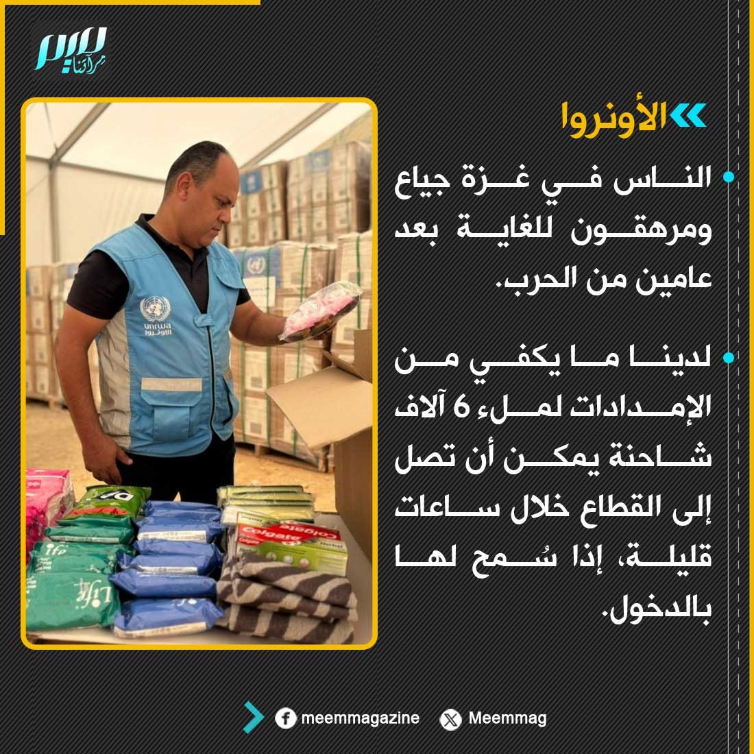 الأونروا: لدينا ما يكفي من الإمدادات لملء 6 آلاف شاحنة