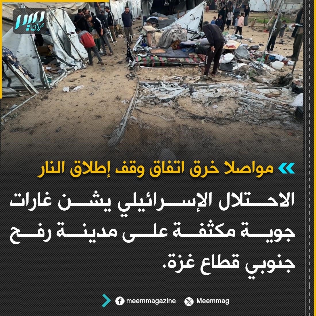 مواصلا خرق اتفاق وقف إطلاق النار: الاحتلال الإسرائيلي يشن غارات جوية مكثفة على مدينة رفح جنوبي قطاع غزة.