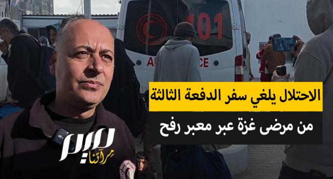 المتحدث باسم جمعية الهلال الأحمر الفلسطيني، رائد النمس: تم إبلاغنا رسميًا بإلغاء سفر الدفعة الثالثة من المرضى من غزة عبر معبر رفح، دون توضيح أسباب القرار.