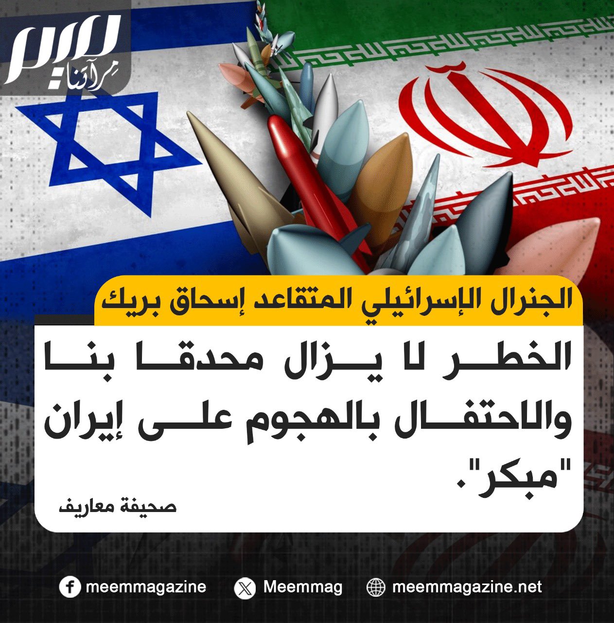 الجنرال الإسرائيلي المتقاعد إسحاق بريك: الخطر لا يزال محدقا بنا والاحتفال بالهجوم على إيران "مبكر".