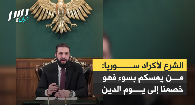 الرئيس السوري أحمد الشرع، في رسالة إلى الأكراد: "يا أهلنا الكرد، احذروا أن تصدقوا أننا نريد شرا بكم، فوالله من يمسكم بسوء فهو خصمنا إلى يوم الدين. وإنني أتشرف اليوم بإصدار مرسوم خاص يضمن حقوقكم وخصوصياتكم".