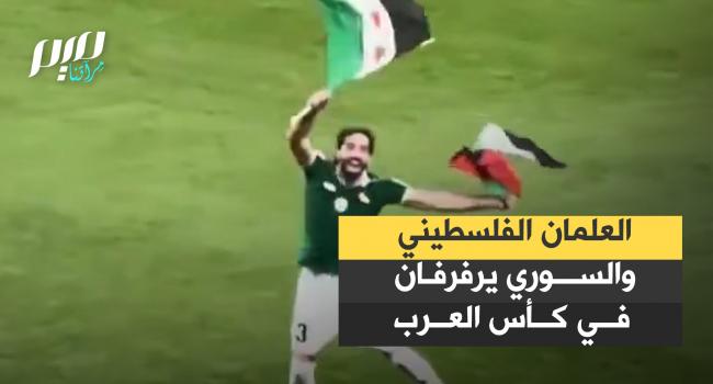مقطع فيديو يظهر لاعب المنتخب الفلسطيني محمد صالح، ابن مدينة غزة، وهو يرفع علمَي سوريا وفلسطين معا احتفالا بتأهل الفريقين إلى ربع نهائي كأس العرب 2025.