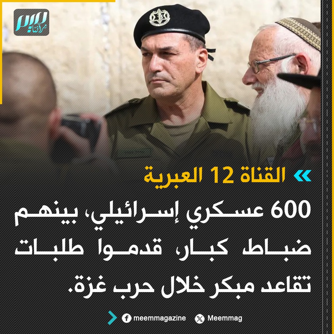 لم يوافق لهم لعدم وجود بدلاء.. القناة 12 العبرية: 600 عسكري إسرائيلي، بينهم ضباط كبار، قدموا طلبات تقاعد مبكر خلال حرب غزة.