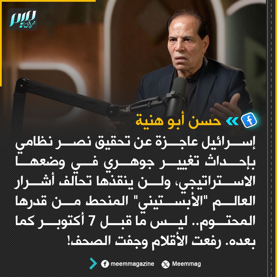 الكاتب الأردني حسن أبو هنية: إسرائيل عاجزة عن تحقيق نصر نظامي؛ بإحداث تغيير جوهري في وضعها الاستراتيجي