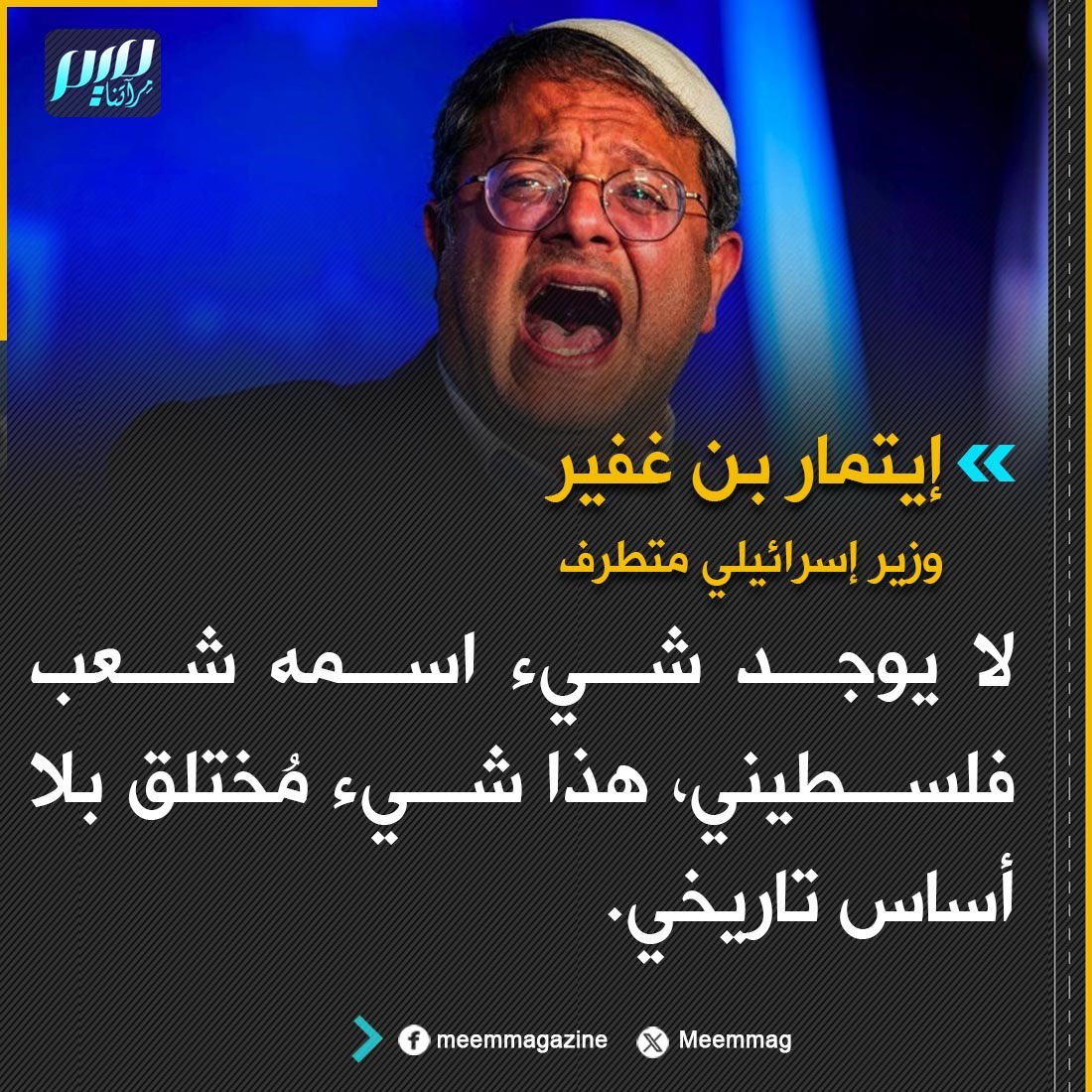 المتطرف بن غفير: لا يوجد شيء اسمه شعب فلسطيني، هذا شيء مُختلق بلا أساس تاريخي.
