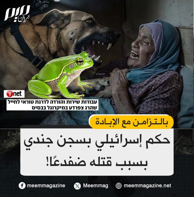 "كل من يقسو على الحيوانات ويسيء إليهم، سينتهي به الأمر إلى إيذاء البشر أيضًا".. بعد قتل عشرات آلاف الفلسطينيين وحرق أطفالهم وهم أحياء، المحكمة العسكرية الإسرائيلية تقضي بسجن جندي 4 شهور، لتعذيبه ضفدعًا في الميكرويف إلى أن قُتل! بم تصفون الأمر؟