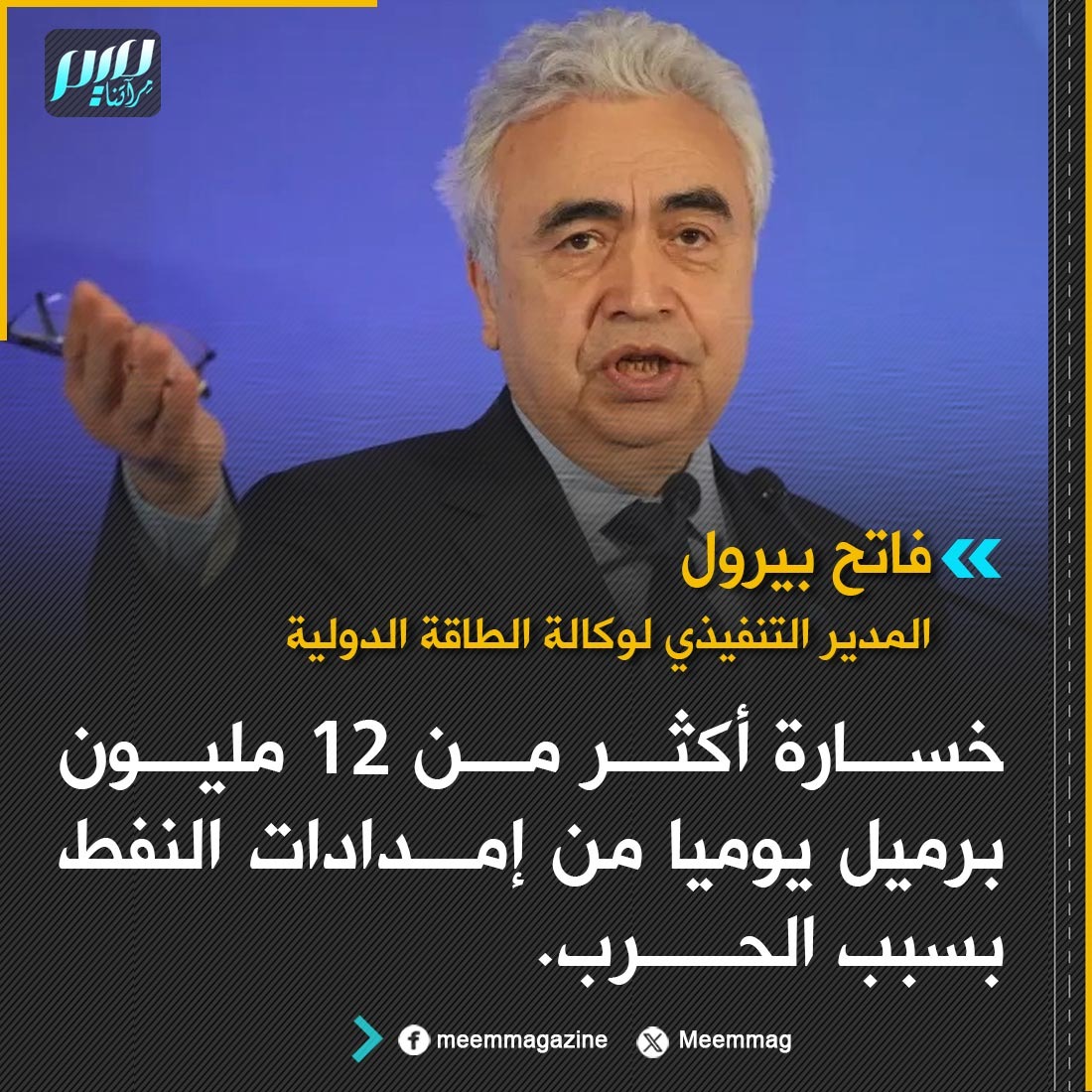 المدير التنفيذي لوكالة الطاقة الدولية: خسارة أكثر من 12 مليون برميل يوميا من إمدادات النفط بسبب الحرب.