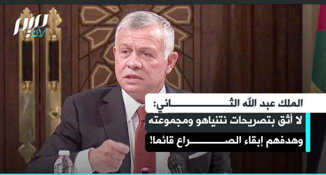 العاهل الأردني الملك عبد الله الثاني: "هدف نتنياهو ومجموعته هو إبقاء الصراع دائمًا ليظلّوا في السلطة، وأنا لا أثق بأي شيء يقولونه."