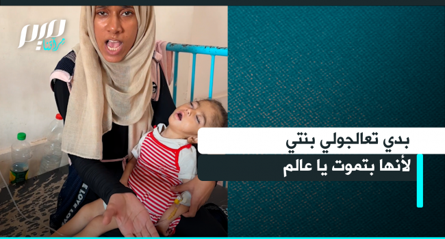 والدة الطفلة الفلسطينية "مريم" التي تعاني من سوء تغذية حاد، وفقر دم شديد، ونقص في الصفائح الدموية وكريات الدم البيضاء، وتشنجات عصبية متكررة وأكثر من خمس مشاكل أخرى تتحدث عن مأستها لمجلة ميم.