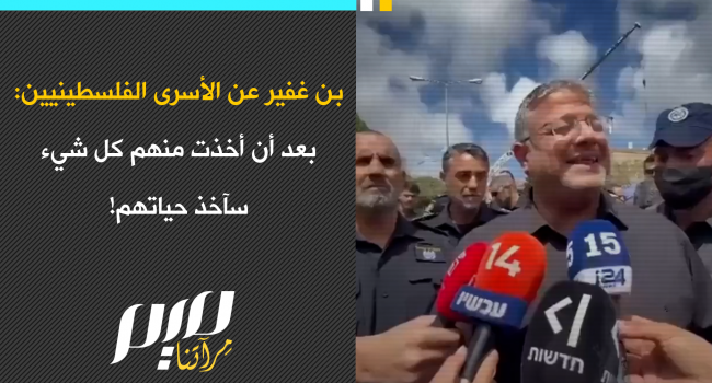 وزير الأمن القومي الإسرائيلي المتطرف إيتمار بن غفير عن الأسرى الفلسطينيين: "إعدام الإرهابيين هو الأكثر أخلاقية، بعد أن أخذت منهم كل شيء سآخذ حياتهم."