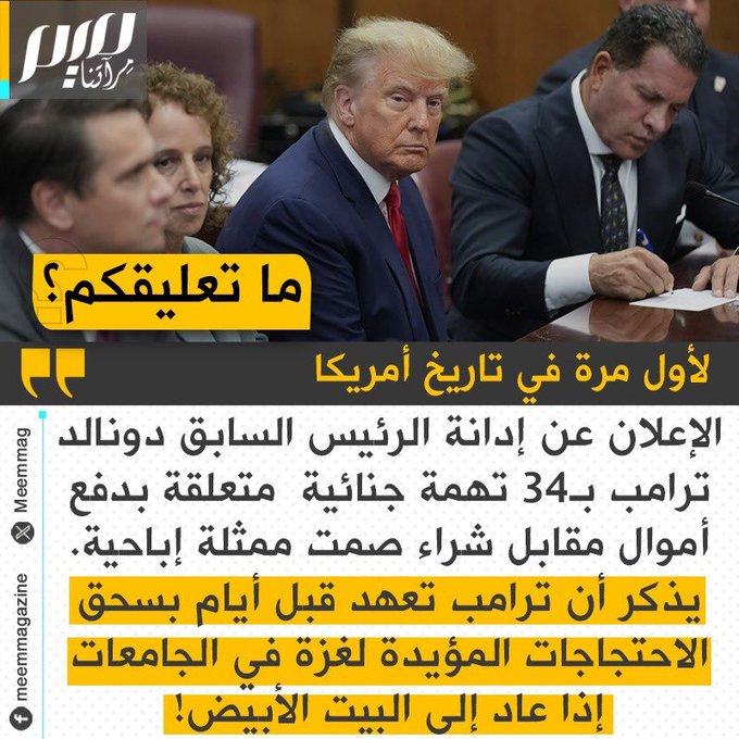 ترامب أمام المحكمة بعد إدانته بـ 34 تهمة جنائية!
