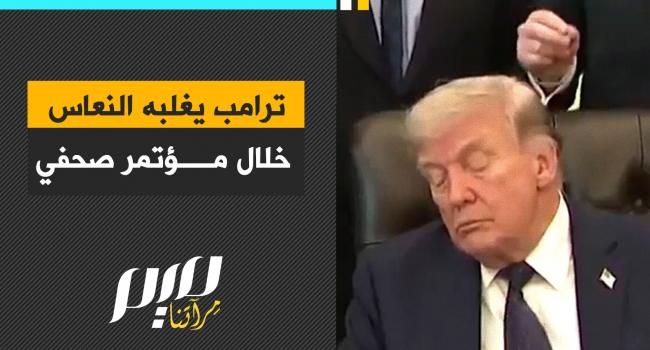 مشاهد مصوّرة تُظهر الرئيس الأمريكي دونالد ترامب وهو يغفو بعدما غلبه النعاس، خلال مؤتمر صحفي في المكتب البيضاوي.