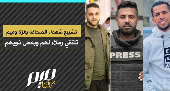 مجلة ميم تنقل تشييع جماهير غفيرة جثامين شهداء الصحافة عبدالرؤوف شعت ومحمد قشطة، وأنس غنيم، الذين ارتقوا أثناء تأديتهم واجبهم المهني أمس، ومتحدثون من عائلات الشهداء والمسؤولين يؤكدون أن استهداف الإعلام يهدف إلى طمس الحقيقة، مطالبين العالم بالوقوف إلى جانب الشعب الفلسطيني، وتمكينه من العيش بسلام وأمان