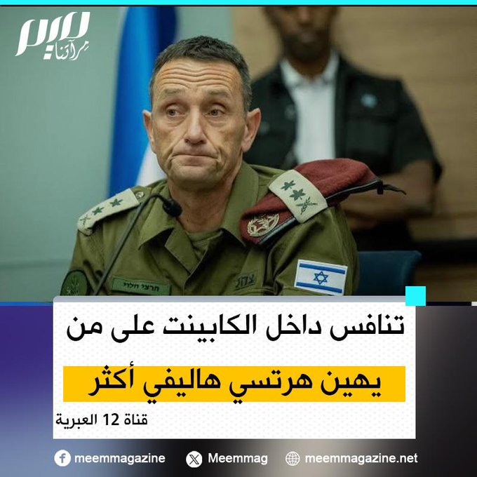 قناة 12 العبرية: ثمة تنافس داخل الكابينت على من يهين رئيس أركان الجيش هرتسي هاليفي أكثر.