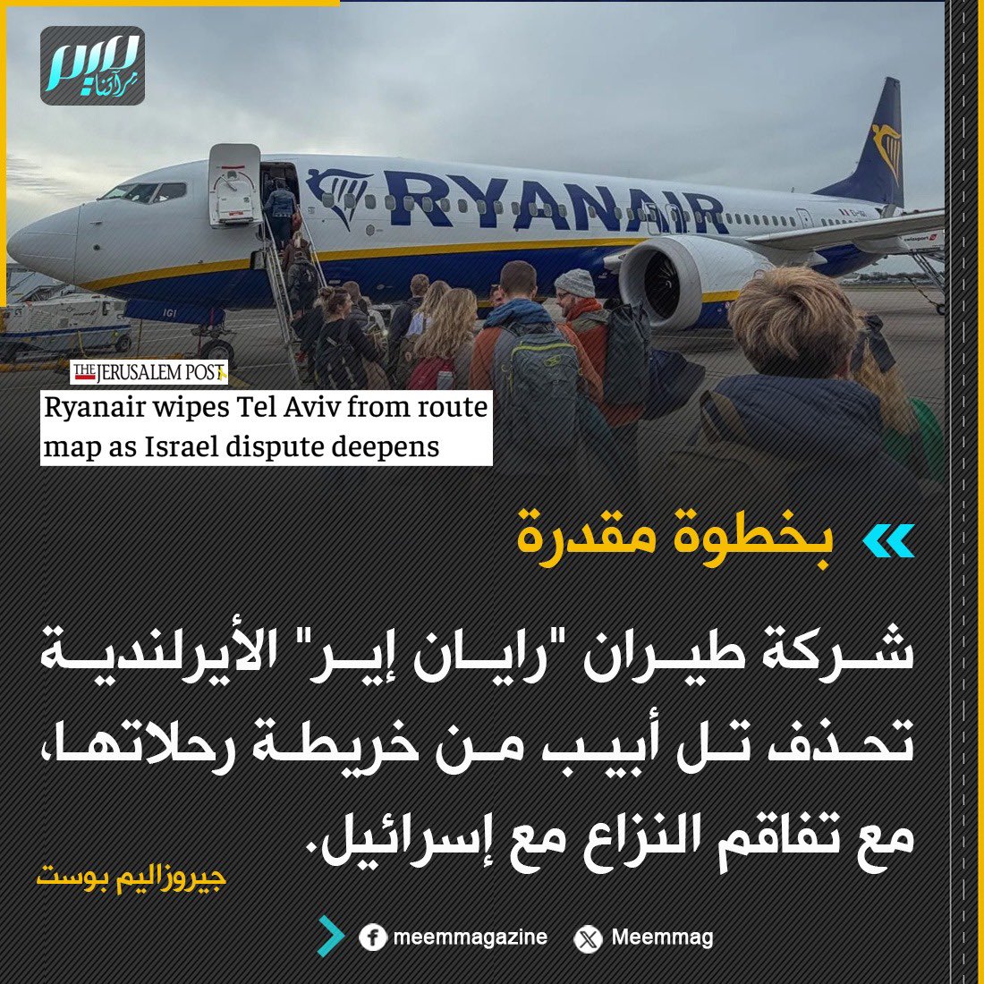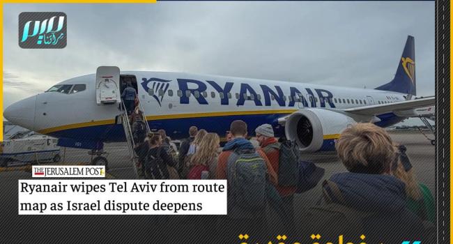 جيروزاليم بوست: شركة طيران "رايان إير" الأيرلندية تحذف تل أبيب من خريطة رحلاتها، مع تفاقم النزاع مع إسرائيل.