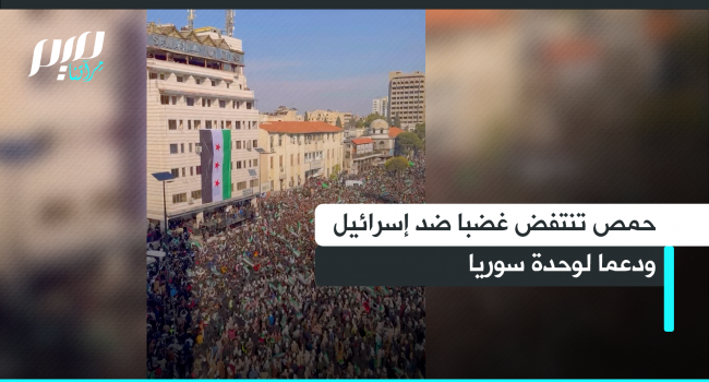 مظاهرات حاشدة في مدينة حمص السورية دعما للقرى السورية التي تتعرض لاعتداءات إسرائيلية متكررة، وتأكيدا على تمسكهم بوحدة سوريا شعبا وأرضا في مواجهة مخططات التقسيم.