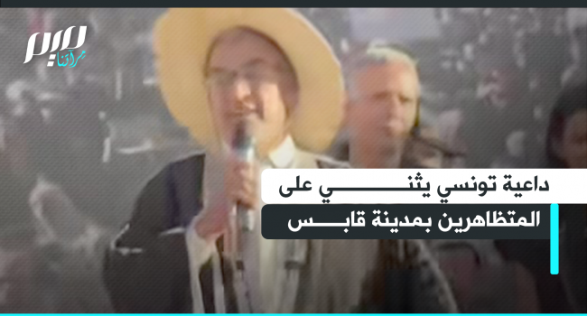 المتظاهرين بمدينة قابس، وسط هتاف وتصفيق حار لخطابه.